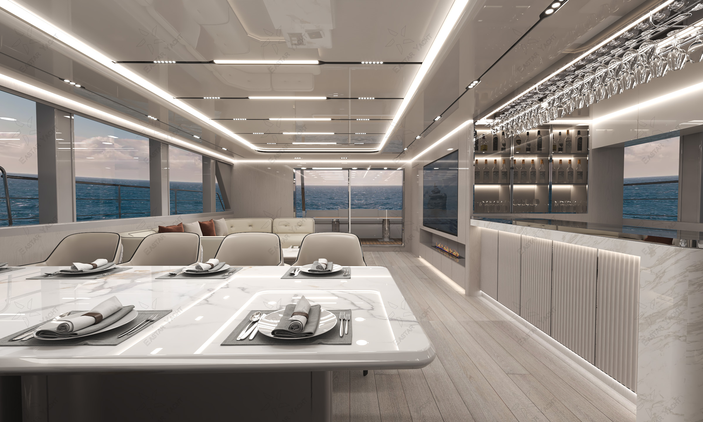 TY560是一款由天域自主創(chuàng)新研發(fā)的雙體動力游艇,該艇開創(chuàng)了集豪華與舒適為一體的動力艇新世界,其輪廓彰顯著永恒的高雅;設(shè)計師以開放、極簡線條為基礎(chǔ)的設(shè)計手法,打造出自由寬敞、溫和舒適的奢華空間,最精髓的設(shè)計理念是簡潔,所有設(shè)計考量都要精細(xì)而恰到好處,TY560是一款低調(diào)內(nèi)斂的雙體游艇,它就是一艘漂浮在海上的多功能“移動行宮”,在性能及功能方面它具備滿足船東對游艇的各種需求。