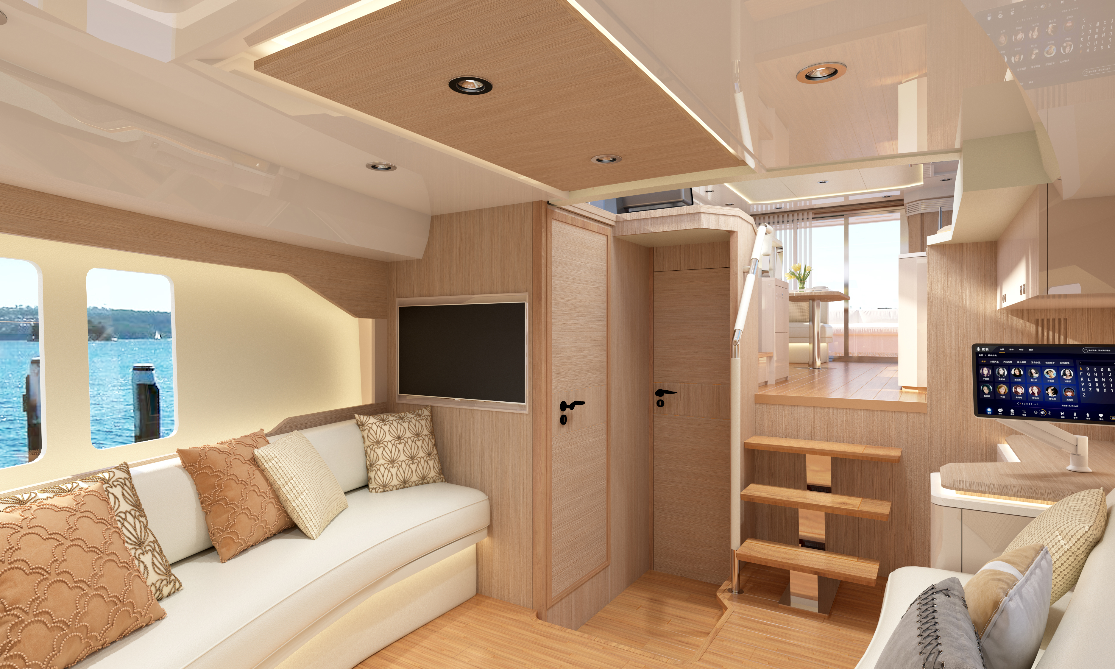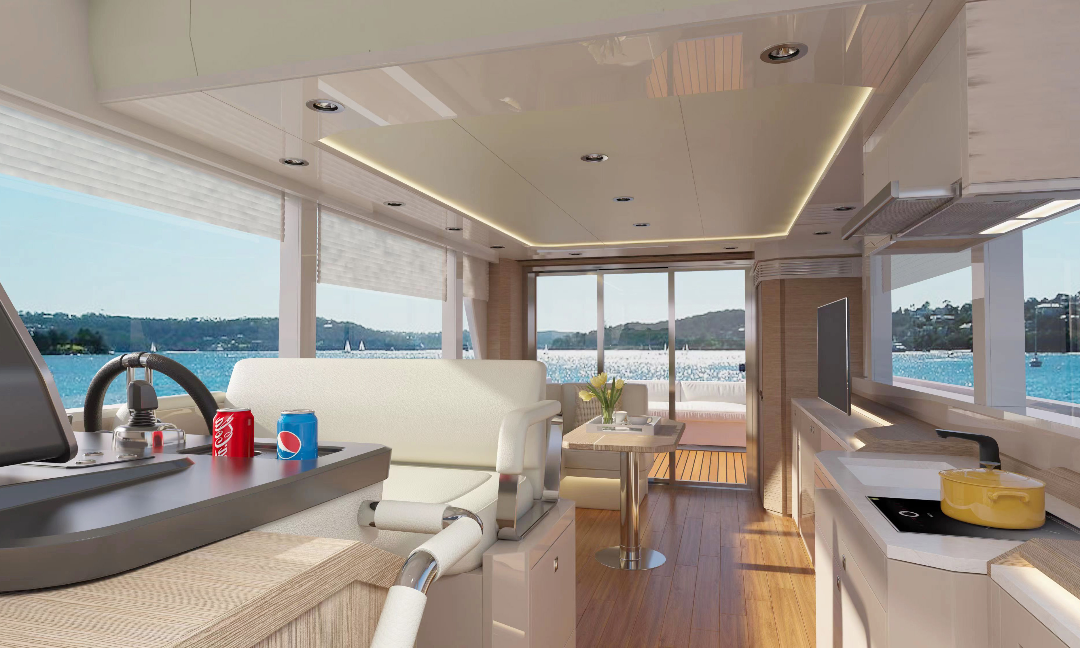 簡約休閑沙龍功能區(qū),開放式甲板空間,滿足不同的水上生活方式。主甲板布局集沙發(fā)、餐桌、娛樂系統(tǒng)、開放式廚房以及體驗感十足的駕駛區(qū)為一體,是一個集休閑和新生活方式的商務交流平臺。體驗一次烹飪,來一場樂趣party,觥籌交錯,肆意灑脫,與親朋好友,縱情海天之間,體驗無拘歡樂。