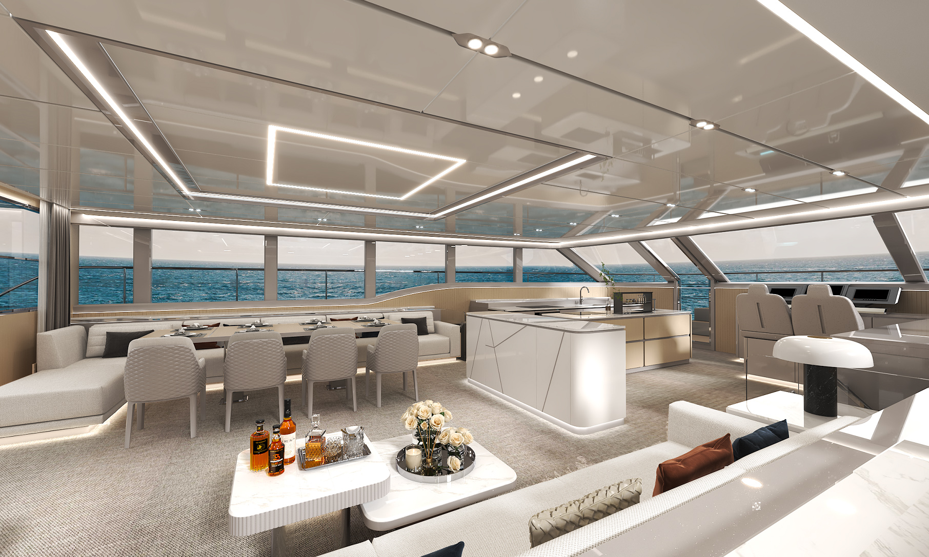 TY660雙體游艇以突破性設(shè)計(jì)重塑海上生活美學(xué)。其外形采用超前創(chuàng)新輪廓,流暢干練的弧線勾勒出飽滿優(yōu)雅的身姿,既彰顯尊貴氣度,又將功能性與美感完美融合。