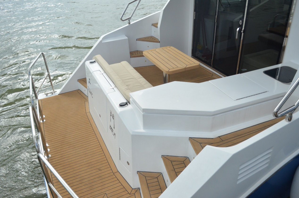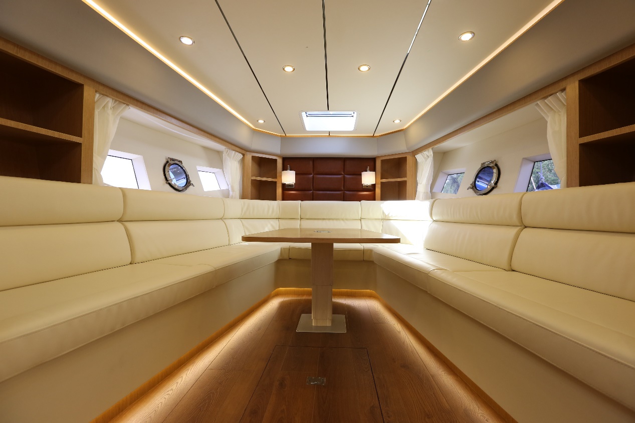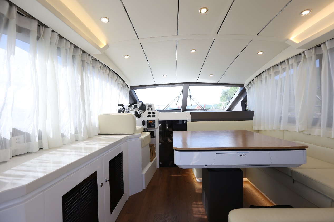 駕駛艙特色休閑功能,也是目前在同尺寸范圍唯一,在駕駛艙帶麻將桌的動力艇。